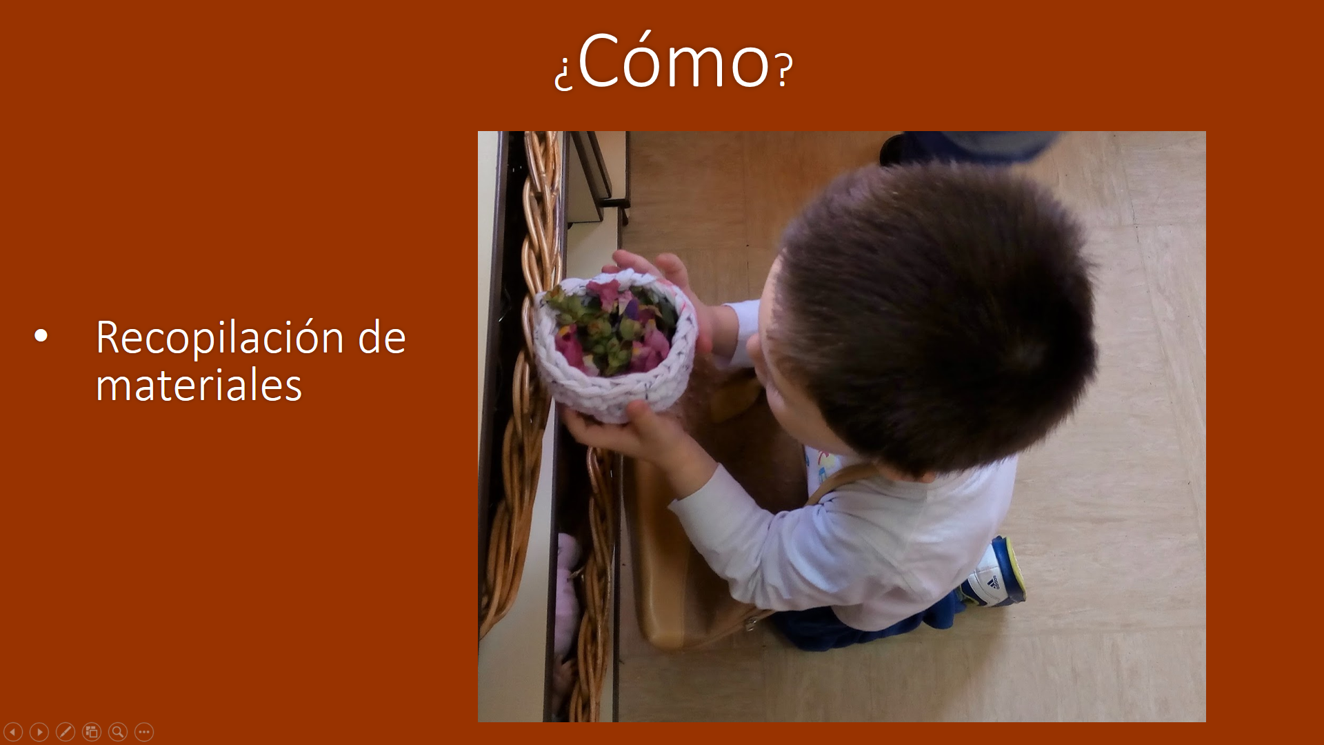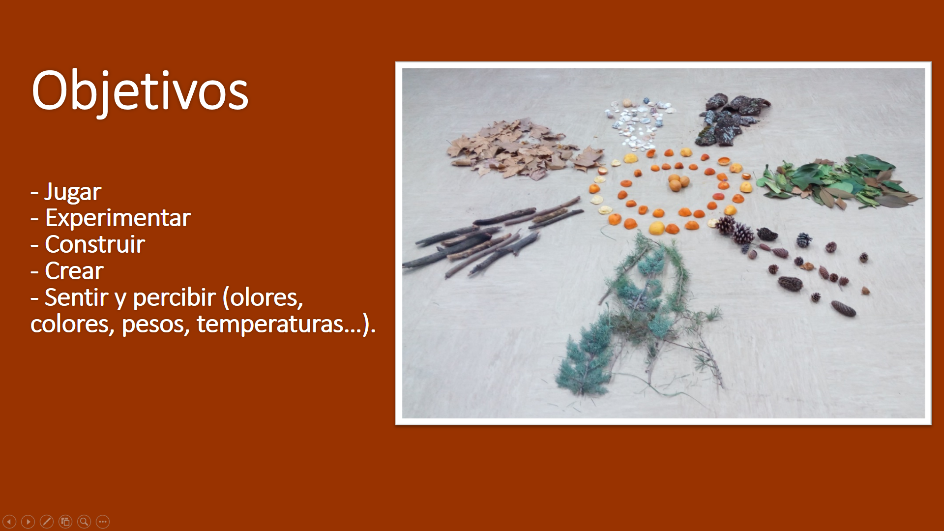 Hoy en día en los hogares hay pocas oportunidades de conectarse con el medio natural y por lo tanto pocas ocasiones de manipular y experimentar con elementos de la propia naturaleza.