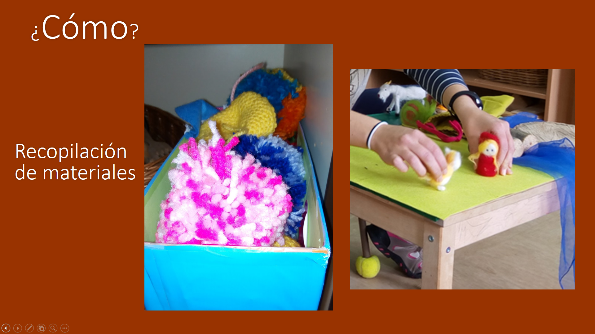 Pompones de lana, personajes de cuentos elaborados con lana cardada...